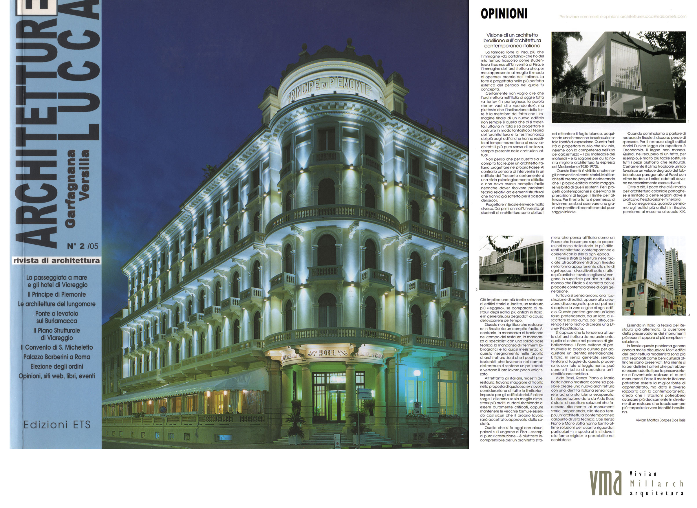 Artigo publicado na revista Architetture Lucca sobre as diferenças na forma de trabalhar com restauro na Itália e no Brasil.
